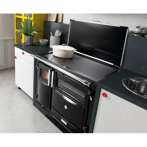 - Fabricadas en hierro Fundido garantizando un Acabado de alta Calidad, una gran resistencia y una transferencia de calor óptima. Acabado en Esmalte. El Acabado en Esmalte Confiere al hierro Fundido una protección excepcional, preservándolo de agentes externos. El brillo permanece intacto con el paso del tiempo, y la superficie antiadherente se limpia con facilidad. Horno en Acero Inoxidable. Con sistema de embutido que evita deformaciones Cristal Cerámico. Capaces de resistir al calor intenso y cambios bruscos de temperatura. Cajón Cenicero. Los cajones cenicero garantizan la limpieza y la comodidad en la retirada de las cenizas. Toma de aire exterior. Permite introducir el aire de combustión desde el exterior de la vivienda, asegurando un perfecto funcionamiento en estancias con gran aislamiento. Encimera Elevable de cristal Vitrocerámico con bajoencimera en hierro pulido y esmaltado, para poder cambiar de superficie de cocinado con facilidad.