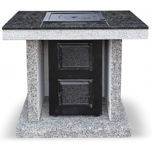 Esta barbacoa está equipada con un quemador de hierro fundido que permite el uso de todo tipo de combustible: carbón, madera, etc. Sin embargo, la característica más importante del uso de hierro fundido es la posibilidad de utilizar la barbacoa a bajas temperaturas. ► La campana de acero inoxidable es de alta calidad, resistente a los ácidos y acero inoxidable (1 cm). Esta campana extractora de acero inoxidable se caracteriza por su excelente rendimiento al aire libre y no requiere un techo protector adicional. ► La estructura básica de nuestra barbacoa es un mortero especial reforzado de alta calidad, que gracias al tratamiento hidro (tratamiento de chorro de agua bajo alta presión) tiene una vida útil de aprox. 20 años. ► El marco de hierro con asas de madera es la versión técnica más sencilla en esta barbacoa, pero también en este caso nuestra empresa ha prestado mucha atención a un detalle tan importante. Este marco tiene asas de madera, por lo que puedes estar seguro de que tus manos no se exponen al calor, ya que la madera prácticamente no se calienta y un revestimiento especial no se ensuciará cuando se usa. ► El revestimiento de granito de toda la superficie de trabajo tiene una función práctica y estética. Este material es resistente a arañazos mecánicos y lo más importante, prácticamente no absorbe grasa. Gracias a todas estas características, la parrilla siempre tiene un aspecto perfecto. Material de construcción: acero inoxidable, mortero especial reforzado, hierro fundido. Color de la placa de trabajo: negro. Material de la cúpula: acero inoxidable (10 mm, inoxidable).