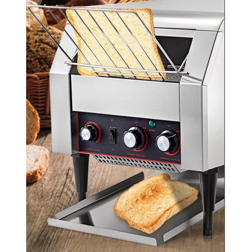Nuestros bastidores de tostadora transportadora están hechos de acero inoxidable apto para uso alimentario para mayor durabilidad. Esta tostadora transportadora comercial puede tostar hasta 150/300/450 rebanadas de pan por hora. Podrá deleitar a su invitados con pan de la más alta calidad y una espera corta. Nuestras tostadoras comerciales de cinta transportadora son fáciles de operar con un panel de control claro. Puede ajustar libremente la velocidad de transporte y la temperatura de la calefacción superior e inferior tubos de acuerdo a diferentes gustos. Bandeja de migas extraíble para facilitar la limpieza. Las tostadoras de pan comerciales cuentan con rejillas de ventilación para garantizar una buena disipación del calor. Perfecto para todo, desde rebanadas blancas tradicionales hasta mitades de bagel de trigo abundantes, bollos, donas y más. Dimensiones: 16,5 x 18,4 x 15,2 cm
