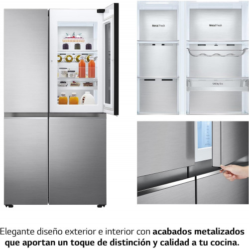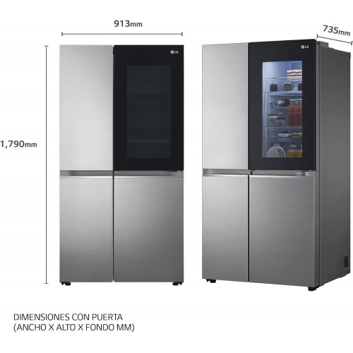 LG GSXV90MBAE - Frigorífico Americano No Frost Instaview, de 635 litros, Frigorífico LG con Función Linear Cooling y Compresor Smart Inverter, Color Acero Texturizado Antihuellas [Clase de eficiencia energética E]