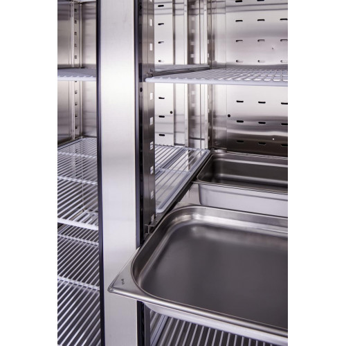 METRO Professional Frigorífico GRE1400, acero inoxidable, 131.4 x 80.5 x 206.5 cm, 940 L, refrigeración por ventilación, 350W, con cerradura, plata [Clase de eficiencia energética B]