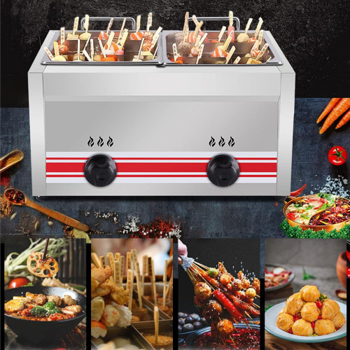 SmPinnaA Freidora Profesional De Gas Comercial, Freidora De Restaurante De Cocina De Escritorio De Acero Inoxidable De 10 L/20 L/30 L, Freidora De Propano De Doble Ranura De Gran Capacidad