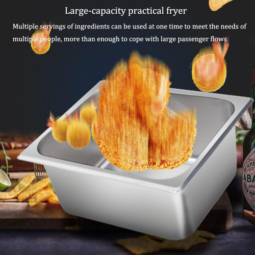 - Freidora a gas de sobremesa comercial: La freidora tiene diferentes capacidades de almacenamiento de 10L/20L/30L. El tanque de aceite de gran capacidad puede freír varias porciones de ingredientes a la vez, lo que es suficiente para preparar papas fritas para su familia o restaurante. Esta freidora es potente y muy adecuada para uso comercial y familiar, como restaurantes de comida rápida, cafeterías, snack bar, fiestas o reuniones familiares.