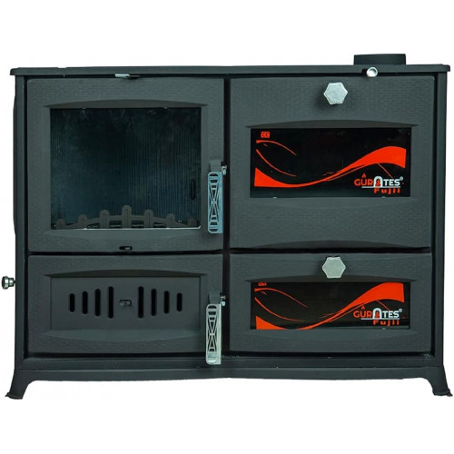 KAUFENET Estufa de 100% hierro fundido, estufa de leña, estufa con horno, gris oscuro, clase energética A [Clase de eficiencia energética A].