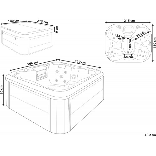 - Los 19 jets ofrecen un masaje relajante en 2 modos de intensidad