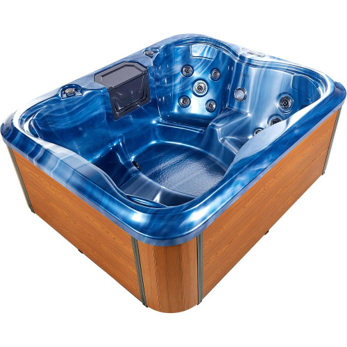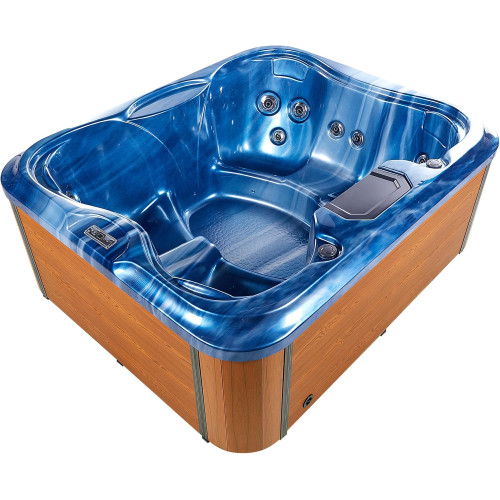 Bañera de hidromasaje LED de acrílico azul madera clara 180 x 215 cm