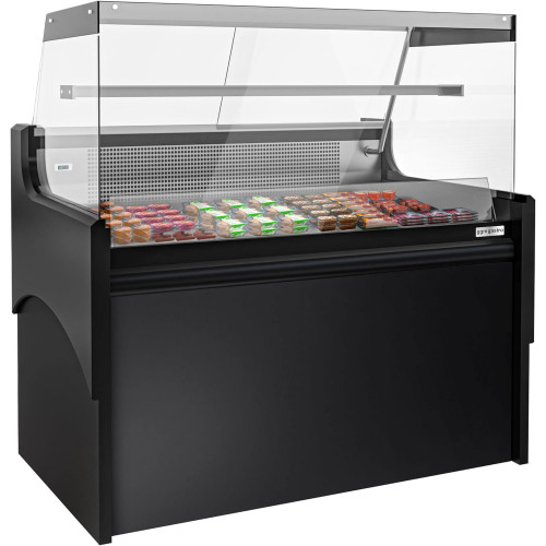 Cristal frontal cuadrado 2 Ventana corredera Pantalla digital Iluminación interior Volumen neto: 140 litros Con cierre de llave Estante superior de vidrio esmerilado Regulador electrónico con pantalla de temperatura Sistema de refrigeración ventilado Pies regulables en altura Encimera de mármol Limpieza fácil Calidad Superficie de presentación en Acero inoxidable Revestimiento exterior lacado Refrigeración R290/150 g Sin CFC Temperatura: 2 °C hasta 8 °C Función de descongelación automática Sistema de refrigeración ventilado Conexión Potencia: 760 Watt Conexión eléctrica: 1N/PE / 230 V. 50 Hz Dimensiones Dimensiones exteriores L x D x H: 1.580 mm x 975 mm x 1.285 mm Dimensiones interiores L x D x H: 1.500 mm x 800 mm x 850 mm Directivas | Producto por supuesto según las directivas de higiene y seguridad. El artículo lleva el marcado CE de acuerdo con la Directiva Material conforme a las normas alimentarias europeas