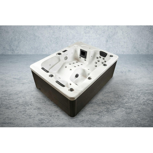 Con nuestra bañera de hidromasaje americana para 3 personas, puedes dejar atrás tu rutina diaria y relajarte por completo. Nuestro sistema informático Gecko le permite ajustar la temperatura individualmente y dejar que las luces LED de color brillen en diferentes colores para crear un ambiente relajante. Nuestro sistema de tratamiento de agua UV al aire libre y desinfección de ozono garantizan un ambiente higiénico y limpio en el que podrá relajarse por completo. El aislamiento total garantiza que puedas utilizar la bañera incluso en temperaturas frías y también ahorra costes de energía.