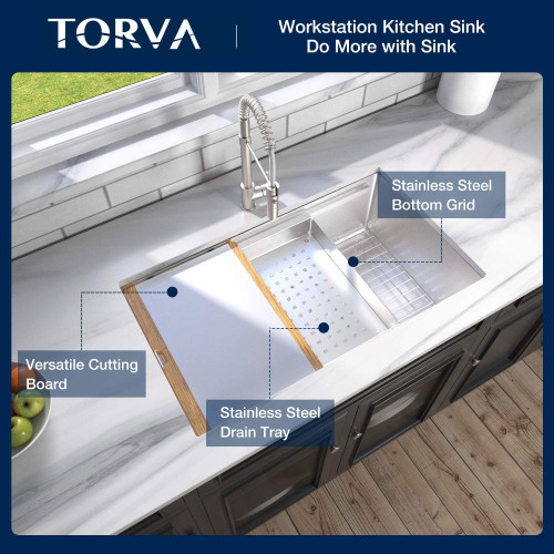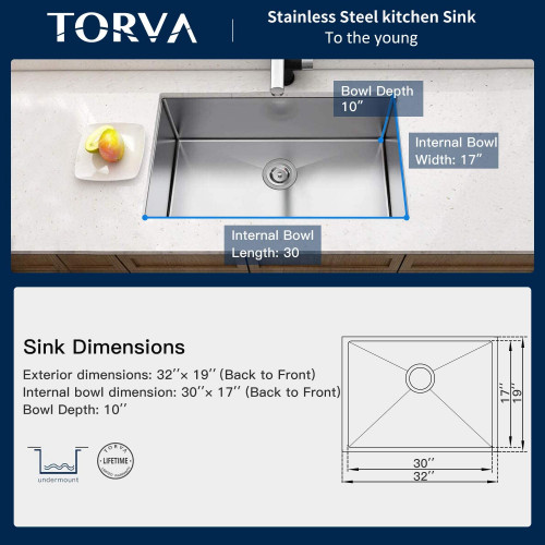 Torva - Fregadero de cocina de acero inoxidable de calibre 16 para fregadero de cocina de 22,86 cm de profundidad