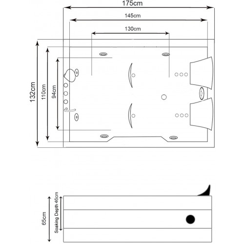 - Para 2 personas – Dimensiones de la bañera: base 170 x 132 cm, altura 65 cm.