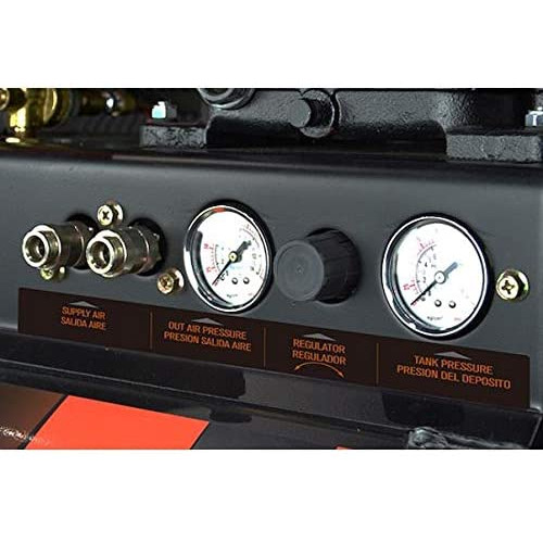 - Panel de control con dos salidas de aire (con cierre rápido), regulador de presión, medidor de presión de salida y medidor de presión de caldera.