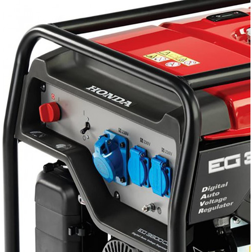 El generador Honda eg3600cl está diseñado para los usuarios más exigentes que necesitan fiabilidad y robustez, estas calidad lo hacen adecuado para aplicaciones comerciales más exigentes y para el alquiler. Tiene la capacidad de detectar y ragire a las variaciones de tensión de salida, el d-avr proporciona un output no fluttuante. Versátil y fácil de usar. – Oil Allert: impide la corrupción del motor, mediante el apagado automático, en caso de que el nivel del aceite scenda bajo el nivel de seguridad. – Depósito de combustible más grande para garantizar un funcionamiento continuo y prolongado – Sistema de vibración de goma óptima gracias a los soportes especiales Motor inclinados de 45 °. Simplemente – Ruedas lisas y estables para permitir a un solo operador de poder mover la unidad. Características técnicas – Tecnología: d-avr Tipo monofásico – Potencia máxima potencia: 3600 W – Uso: 3200 W – Tensión 230 V – Frecuencia 50 Hz – Corriente 13,9 A – Motor gx270t2 – Tipo 4-tempi Motor de 4 tiempos, 1 cilindro Cilindrata – 270 cc – alesaggio x carrera: 77 x 58 mm revoluciones motor 3000 RPM/min Sistema de refrigeración de aire forzata – Encendido transistorizzata – Capacidad Aceite motor 1,1 LT – Capacidad depósito combustible: 24 L – Autonomía: 12 h – Arranque autoavvolgente – Dimensiones: 68,1 x 53 x h57,1 cm – Peso: 68 kg (a) presión acústica lwa-db 79 – Potencia acústica LpA – 96 dB (a)