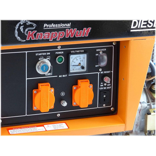 Marca KnappWulf Potencia eléctrica 5000 vatios Peso 90 Kilogramos Color Naranja Tensión 230 Voltios Tipo de motor 4 tiempos Frecuencia 50 Hz Tipo de combustible Diésel