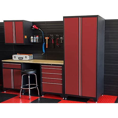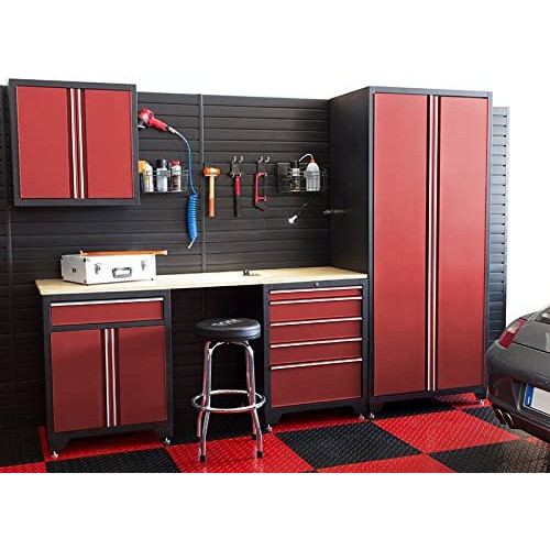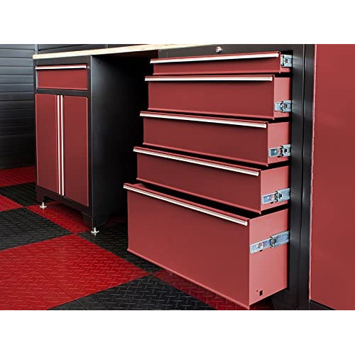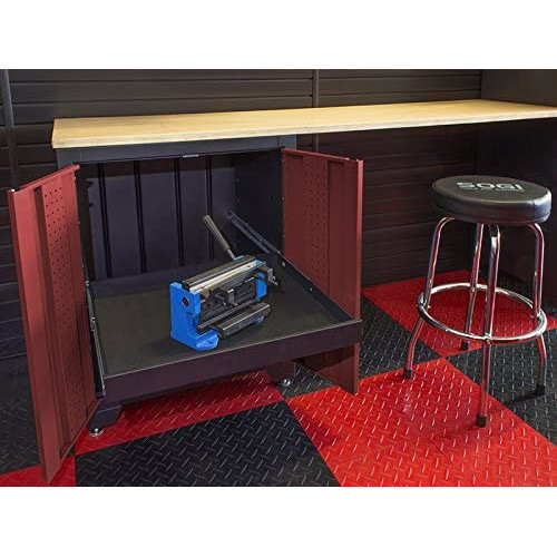 Sogi - Sistema Garaje, Armario banco de trabajo con cajonera para herramientas, color rojo