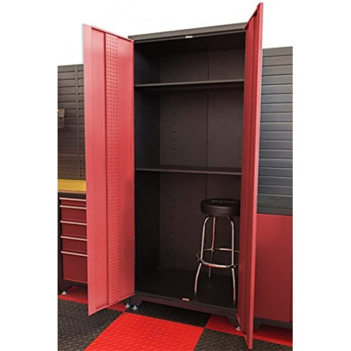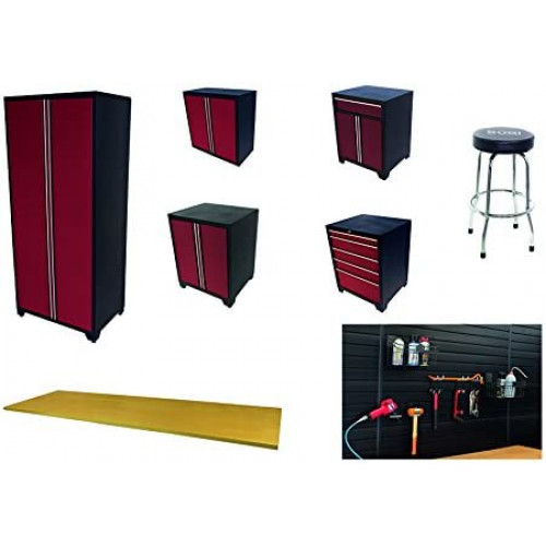 - Armarios Con puertas de aluminio perfilados. Pies regulables para nivelación en cualquier suelo. Equipado con agujeros de ventilación y mecanismo de bloqueo magnético. Agujeros de ventilación que permiten la circulación del aire en el interior. Bisagras a lo largo de toda la longitud. Cajones con agujeros perforados en la parte superior listo para fijar una encimera de madera. Cajones totalmente extraíbles con rodamiento diapositivas.<br/>Garaje sistema consta de:<br/>Armario con puertas y 5 baldas. 4 x estantes ajustables con 80 mm de intervalo. Tamaño: L 915 mm; D 610 mm; H 2,120 mm). Peso: 97 kg.<br/>Cajones en el pecho. Tamaño: Una de 600 x 560 x 260 (H) mm; tres de 600 x 560 x 125 (H) mm; una de 600 x 560 x 55 (H) mm. Dimensiones: L 710 mm; D 610 mm; Altura de 910 mm). Peso: 61 Kg.<br/>Armario con 2 puertas y 1 cajón. Cajón (Dimensiones exteriores: 600 x 560 x 125 (H) mm. Cajón interno Dimensiones: 600 x 530 x 55 (H) mm. L = 710 mm; D = 610 mm, H = 910 mm). Peso: 48 kg.<br/>Armario de 2 puertas cajón interno Dimensiones: 600 x 530 x 55 (H) mm. L = 710 mm; D = 610 mm, H = 910 mm). Peso = 42 kg.<br/>Armario de 2 puertas con 2 estantes ajustables de pared con 80 mm de intervalo. Y Arandelas para tornillos de fijación. Tamaño: L = 710 mm, D = 355 mm, H = 710 mm). Peso = = = = = = = = 24 kg.<br/>Encimera de madera contrachapada. Tamaño: L = 2.000 mm, D = 610 mm; Grosor = 30 mm. Peso: 30 kg.<br/>La herramienta de pan-1200b pared, gracias a su forma sencilla y diseño, permite muchas maneras para organizar su espacio de trabajo, y te permite conectar herramientas y utensilios de cualquier forma y peso, gracias a los diferentes tipos de ganchos y accesorios disponibles. Tamaño: Paneles: 1.200 x 300 mm). Pared: 2.400 x 2.100 (H) mm. Grosor del panel: 18 mm. -<br/>Color: Rojo.<br/> SOGI x4 – 15 cromado Taburete giratorio de taller.