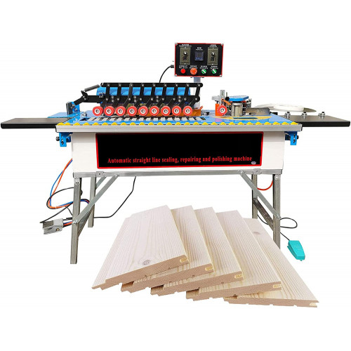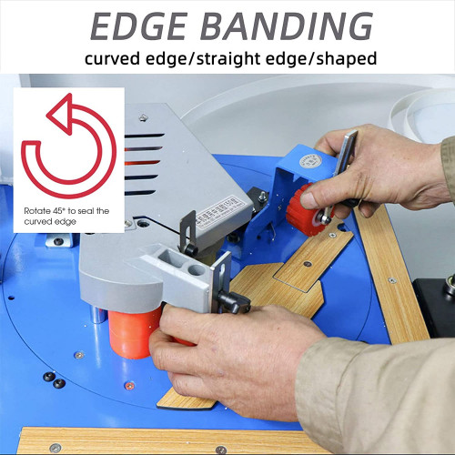 [Máquina multifuncional de bandas de borde para carpintería] Tipo de banda de borde: borde curvo / borde recto / borde con forma, completamente automático, velocidad ajustable, calentamiento rápido, control inteligente de temperatura, máquina todo en uno para recortar, pulir y bandas de borde.
