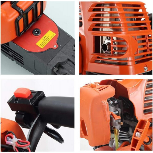 Parámetro técnico: Desplazamiento: 52 cc. Potencia: 1900 W. Frecuencia de impacto: 1500 BPM. Relación de combustible: 25:1 (gasolina: aceite de motor de dos tiempos). Capacidad del depósito de combustible: 1,3 L. Velocidad de rotación: 6500 rpm. Energía de impacto: 20-55 J. Peso neto: 21 kg. Peso: 50 kg. El juego incluye: 1 taladro de roca de gasolina. 5 palas. 3 cabezales de taladro. 1 placa de tapón. Juego de accesorios Característica 1. Alta potencia de 1900 W, sin llama, resistencia a altas temperaturas. 2. La operación de inicio de inercia de resorte de cuerda es simple y conveniente. 3. Mango de silicona antideslizante que absorbe los golpes para un uso más seguro. 4. Engranajes internos de acero manganeso de alta resistencia con buen rendimiento. 5. Ampliamente utilizado en la instalación de hidroelectricidad, demolición de hormigón, demolición de pared, cantera, corte de raíces y trasplante, apisonamiento de grava y otros trabajos de perforación.