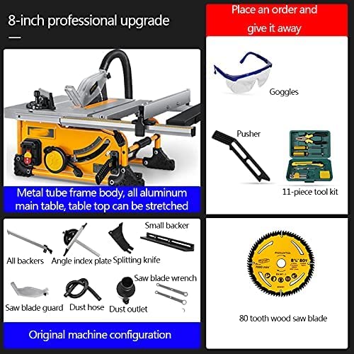 AWJ Sierra Circular de Madera sin Polvo de 8 Pulgadas, Herramienta de Corte eléctrica para carpintería de 1500w, Sierra eléctrica multifunción, Sierra de Mesa