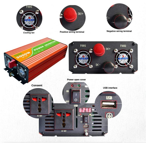 Inversor de 1000W: puede convertir DC12v/24V a AC 110V/220V/240V para evitar sobrecorriente eléctrica, etc. Puede verificar fácilmente el voltaje restante de la batería y comprender el tiempo de la batería. Es adecuado para todos los electrodomésticos, como hornos de microondas, cafeteras y refrigeradores.