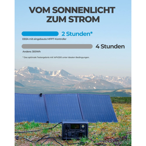[Carga Ultrarrápida] - Sin bloque de alimentación voluminoso, cable único EB3A que carga hasta 350W; también puede usar PV + AC juntos para 80% SOC en 30 minutos. (Cable de carga solar no incluido).
