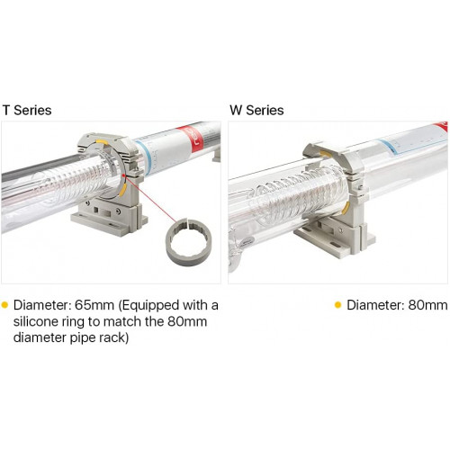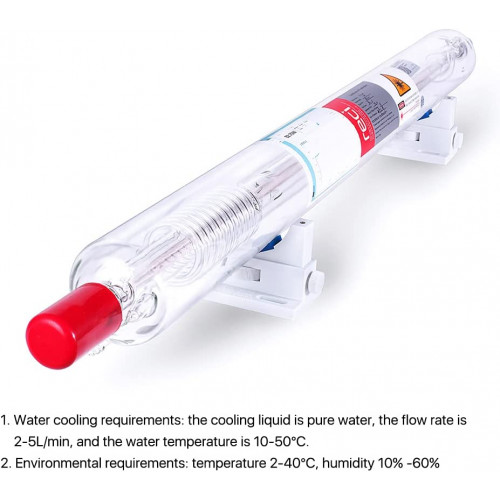 Tasa de potencia más alta en comparación con el tubo láser de longitud similar y mayor tiempo de servicio, que es adecuado para marcado láser, corte láser y grabado láser.