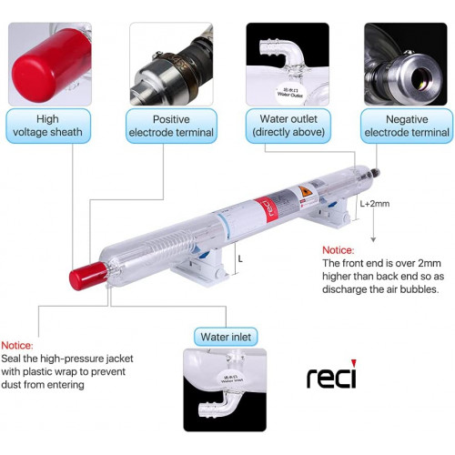 Cloudray Reci W8 150-180W CO2 Tubo láser Caja de madera Caja de embalaje Dia. 80mm L1850mm para máquina cortadora de grabado láser CO2