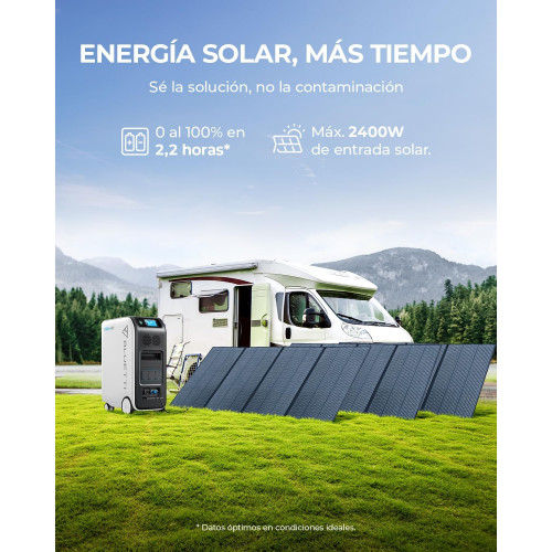 - [Carga Flash] - EP500Pro se puede cargar en solo 1,8 horas a través de una carga dual de 2400W PV + 3000W CA (se requiere un cable de carga de 30A CA) para alcanzar una potencia de entrada máxima de 4000 W.