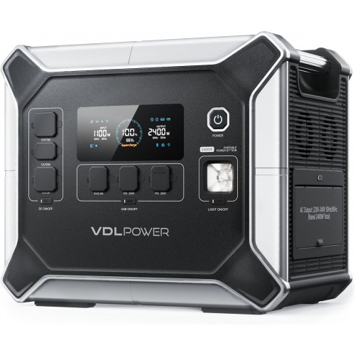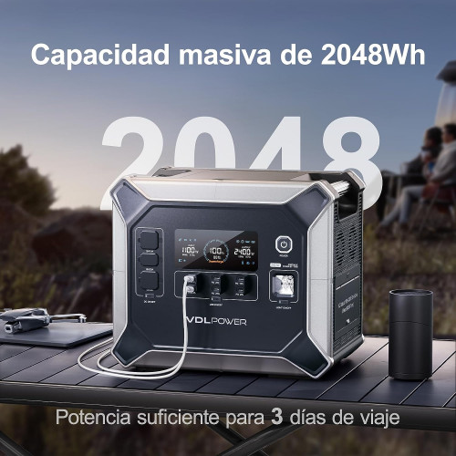 VDL Estación de Energía Portátil 2400W, 2048Wh Generador solar LiFePO4 Batería de Respaldo con 3x 2400W CA Salidas (4800W Pico), para Vacaciones en Autocaravana, Camping, Aventuras y Emergencia HS2400