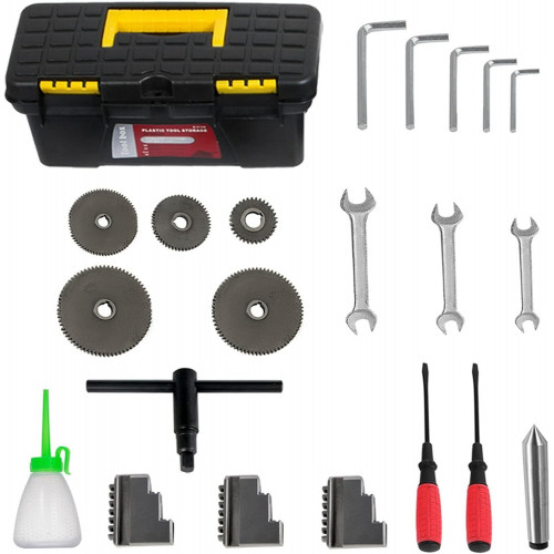 REPOSO COMPUESTO PROFESIONAL: el poste de herramienta de cambio rápido de la mini máquina de torno puede lograr posiciones de corte interno, corte frontal y corte biselado cambiando el ángulo del poste de la herramienta y ajustando el soporte compuesto, moviendo las cuchillas libremente con la varilla de alimentación. El tornillo de avance endurecido por calor se puede invertir en tres velocidades girando las dos manijas debajo del botón giratorio de velocidad variable.