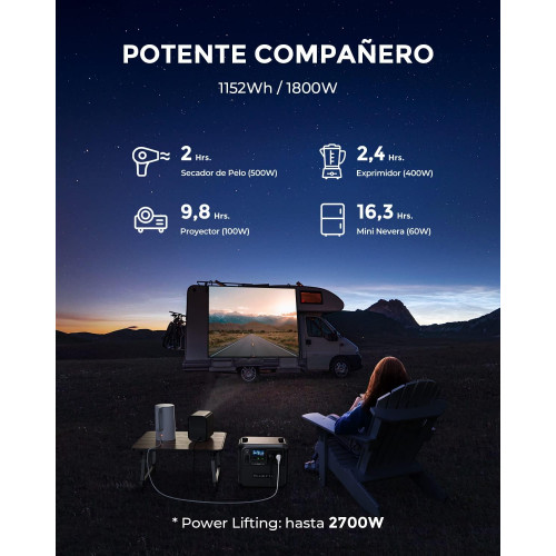 - [Energía Solar] - Este kit de generador solar incluye 1 × AC180 y 1 × panel solar PV200, lo que permite cargar esta central eléctrica de 1152 Wh de 0-80% en 4,6-9,2 horas.