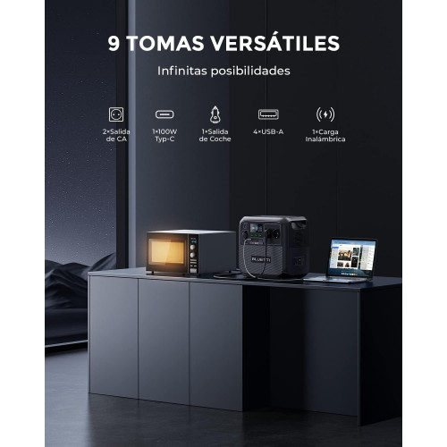 - [9 Salidas Versátiles] - 1800W de potencia de salida: incluye CA, USB tipo A, tipo C y cargador inalámbrico. Compatible con todos los enchufes de dispositivos. Para cargas resistivas puras, la salida de CA es de hasta 2700W.