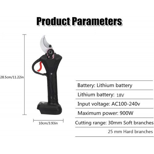 Tijeras de jardín Herramientas de jardinería profesionales Tijeras de podar eléctricas recargables de 18 V y 900 W Tijeras de podar de 4 engranajes de 30 mm Podadora de jardín Cortador de ramas Herra.