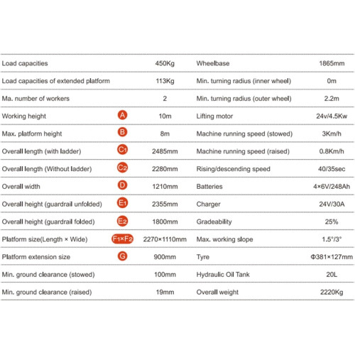 Mecanismo de elevación: elevador de tijera, motor eléctrico.
