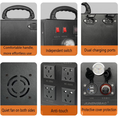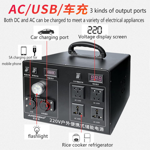 - DISEÑO: forma simple, en línea con el mejor concepto de agarre manual del cuerpo humano. Ampliamente compatible, a prueba de golpes, a prueba de fuego y a prueba de explosiones. DESCRIPCIÓN: hace coincidir de forma totalmente automática la salida de corriente del equipo de carga con la corriente más adecuada y eficiente, fuente de alimentación multifuncional para exteriores, puede llevarla consigo. La fuente de alimentación de larga duración puede impulsar electrodomésticos de alta potencia ESPECÍFICO: Nombre del producto: Banco de energía Categoría: Tipo de almacenamiento de energía Dimensiones: 300*260*220 (mm) Características del producto: tipo de almacenamiento de energía/fuente de alimentación de emergencia/carga de coche/carga solar/carga de CA/onda sinusoidal pura Puerto de salida: CA (tiempo de carga 5 horas)/USB/cargador de coche 3 puertos de salida Forma de onda de salida: onda sinusoidal pura Puerto de salida de CA: 220 V 50 Hz Salida USB: 5 V 1 A/5 V 2,1 A Salida de 12 V: 300 W: 12 V 50 A/600 W: 12 V 50 A/1000 W: 12 V 80 A/1500 W: 12 V 125 A/2500 W: 12 V 1 60 A Iluminación Lámpara: 5W CONTENIDO DEL PAQUETE 1x fuente de alimentación móvil.