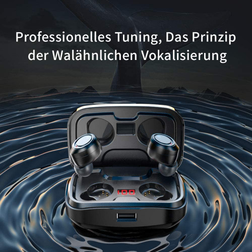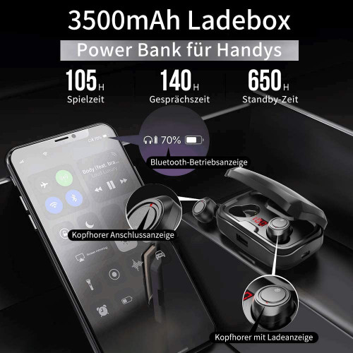 Antimi - Auriculares inalámbricos con Bluetooth 5.0 (140 Horas de reproducción, Pantalla Digital, IPX7, Resistente al Agua, para iPhone, Huawei, Samsung (Negro)
