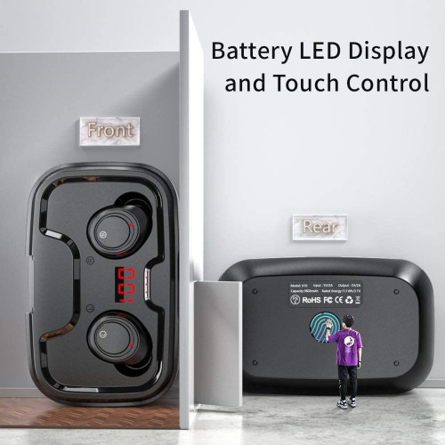 - 【Pantalla LED de batería】 El auricular Bluetooth del nuevo modelo dispone de una función de pantalla LED de batería y un botón de huellas dactilares. Al tocar el botón de huellas dactilares, puedes leer fácilmente la potencia de la caja de carga sin preocuparte por el corte de energía de la caja de carga.