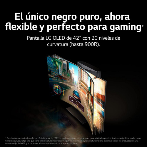 • Pantalla OLED Flexible que te permite 20 grados diferentes de curvatura y ajuste en altura para adaptar la pantalla acorde a la distancia y altura de visionado. Es la combinación perfecta entre un TV y un monitor Gaming