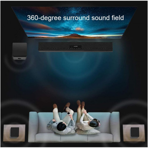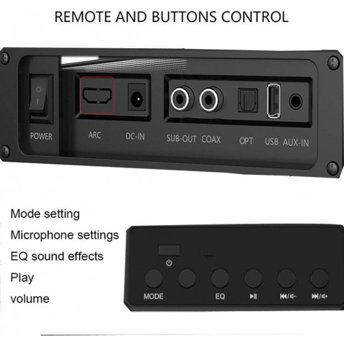 - [Conexión funcional]: barra de sonido Bluetooth portátil, entrada por cable e inalámbrica, disfrute de la transmisión de música a través de Bluetooth 4.1 incorporado, la conexión por cable incluye AUX, coaxial, fibra óptica, USB, el diseño potente es muy adecuado para TV y proporciona un sonido de sala inmersivo