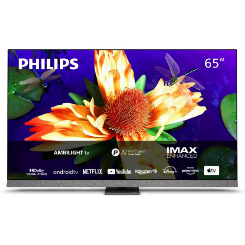 Philips 65OLED907/12 Televisor 4K OLED, Ambilight, UHD, HDR10+ y 120 Hz, Dolby Vision, Dolby Atmos e IMAX, Marco de Bisel metálico, 65" [Clase de eficiencia energética G]