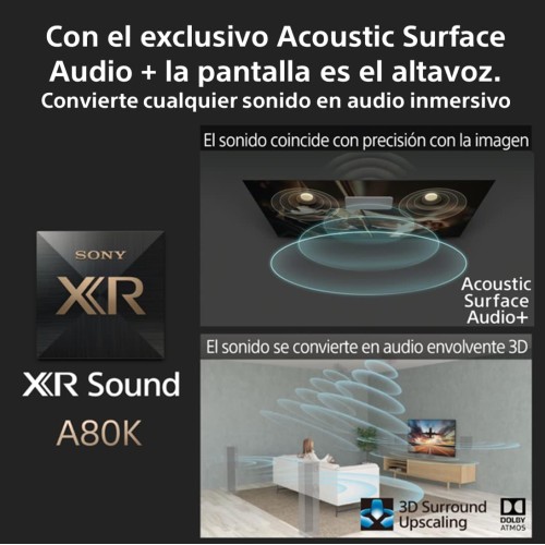 Sony OLED - 77A80K/P BRAVIA XR, televisor inteligente Google 77 pulgadas, 4K/P HDR 120Hz y HDMI 2.1 para PS5, Dolby Vision-Atmos, Pantalla Triluminos Pro [Clase de eficiencia energética E]