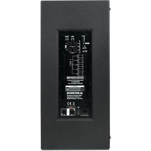 DSP: 96 kHz, procesador DSP de 48 bits, Bluetooth 4.2, receptor SNR: >100 dBCaja: Madera contrachapada de 15 mm con pintura estructurada. 2 bridas de caja M20. Dimensiones: 38,5 x 81 x 62 cm. Peso: 38,0 kg.