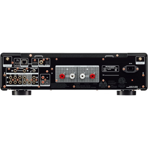 - Conéctate con altavoces integrados HEOS para un sistema de todo el hogar o transmisiones separadas en cada habitación Digital Heart Analog Soul MODEL 40n desbloquea el sonido de alta resolución de tus transmisiones de música digital favoritas (Spotify Apple Music Pandora Tidal y más) y tus propias bibliotecas de archivos de música a través de AirPlay Bluetooth y HEOS. Disfruta del audio desde tu televisor y sus dispositivos conectados utilizando la conectividad HDMI ARC (canal de retorno de audio) integrada. Disfruta de un rico y cálido sonido Marantz desde cualquier fuente. Cuenta con HEOS 2.2 canales integrados HDAM HDMI entrada ARC integrado MM Phono Stage funciona con Amazon Alexa Google Assistant o Apple Siri compatible con Spotify Apple Music Tidal AirPlay Bluetooth y más transmisión multihabitación con HEOS integrado. Conéctate sin esfuerzo a través de Bluetooth Apple AirPlay 2 o directamente desde la aplicación HEOS para reproducir todos tus favoritos de cientos de servicios de transmisión. Transmisión digital de alta resolución El modelo 40n integrado es para aquellos cuya colección de música es infinita y en línea. Conéctate a tu red con Wi-Fi o Ethernet. Con HEOS Built-in no necesitarás equipo adicional para transmitir tus canciones favoritas. El modelo 40n es compatible con Spotify AirPlay 2 Apple Music Bluetooth TIDAL TuneIn y más servicios, además de reproducción de tu propia colección a través de entrada USB-A o en servidores domésticos compatibles. El ecualizador fono musical Marantz La alegría de la reproducción de vinilo es audible y táctil, pero requiere electrónica altamente especializada para un alto rendimiento. El ecualizador fono musical Marantz está integrado para que puedas conectar un tocadiscos con cartucho MM directamente al modelo 40n. Disfrutarás de tus discos favoritos y descubrirás otros nuevos, todo sin la carga de electrónica adicional. Control de tono preciso. Tus preferencias de sonido están al alcance de tu mano. Ajusta los graves y agudos para adaptarse a tu sonido o bypass para el sonido más puro posible. Aspecto lujoso y tacto modelo 40n sigue una larga línea de piezas históricas de Marantz notables por su exquisito diseño. Se considera cada aspecto: desde la visualización clásica de ojos de buey de simetría de materiales de primera calidad e incluso un funcionamiento suave