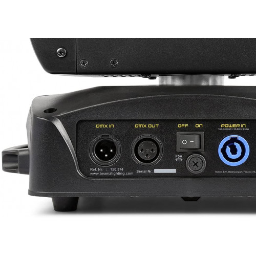 BEAMZ IGNITE150B Este producto está formado por dos cabezas IGNITE180B y el flightcase para su transporte Características Beamz IGNITE180B: Equipado con doble rueda de gobos (con gobos intercambiables) para crear efectos increibles. Combinado con 2 prismas rotativos individuales (8+16) se consiguen efectos aereos en 8 colores. Su rayo de solo 8 grados lo convierte en la opcion ideal para proyectar gobos a gran distancia y rayos moviles. LED 180W Alta intensidad 13 o 17 canales DMX DMX y Autonomo Master/esclavo Ritmo de la musica con ajuste de sensibilidad Auto Angulo Beam 8° Rueda Gobo 1: Gobos 3x cristal y 3x metalicos + abierto (reemplazable) Rueda Gobo 2: Gobos 8x metalicos + abierto Funcion de gobos: gobo tremolo y gobo rotacion 7 Colores + abierto Colores partidos, efecto arcoiris Prisma de 8 facetas rotatorio Prisma de 16 facetas rotatorio Foco motorizado Dimmer electronico 0-100% Strobo: 0-20Hz Correccion automatica de pan/tilt Funcion Reset Panel de control con display LCD DMX in/out via 3-pin XLR Powercon de input/output Garra Quick lock omega incluida (2x) Cable DMX incluido Powercon cable incluido Especificaciones: Head movement:Pan 540° Head movement:Tilt 270° Beam angle 8° No. of colours 7 colours + open No. of gobos 6 rotating, 8 static + open No. of LEDs 1x 180W DMX channels 13 or 17 Power supply 100~240Vac / 60-50Hz Consumption 210W Dimensions 330 x 210 x 350mm Weight 11 kg