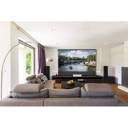 • la tela de alto contraste optimiza los valores de contraste: ¡negro más profundo y colores más vivos como en el cine! ¡Optimizado para los proyectores de ultra corta distancia!