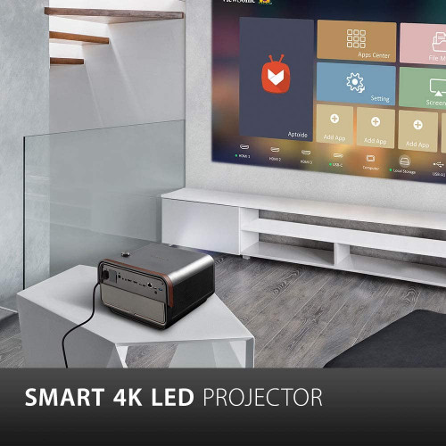 ViewSonic X10-4K Proyector SMART LED UHD portátil de corto alcance para juegos, entretenimiento familiar y doméstico con Wi-Fi Bluetooth y audio Harman Kardon - Carbón metálico