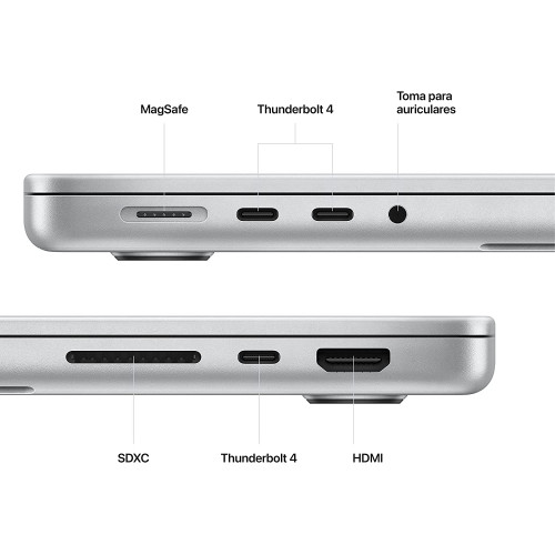 Apple 2023 MacBook Pro con Chip M2 Pro con CPU de Diez núcleos y GPU de dieciséis núcleos: Liquid Retina XDR de 14,2 Pulgadas, 16GB de Memoria unificada, 512 GB de Almacenamiento SSD, Plata