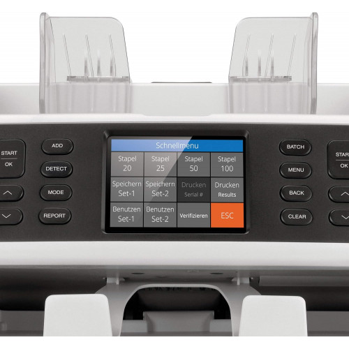 - FUNCIONES DE AHORRO DE TIEMPO: ahorre tiempo y esfuerzo con las cómodas funciones de conteo; seleccione la función de suma para sumar automáticamente el número de billetes contados en distintas sesiones o la función de lote para crear fajos iguales de billetes; explore fácilmente las distintas funciones o incluso guarde sus ajustes preferidos en el menú rápido multilingüe y fácil de usar; todo ello con unos pocos toques en la nítida pantalla táctil en color de alta definición; es así de fácil