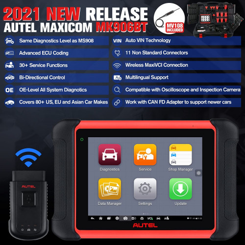 Autel MaxiCOM MK906BT (Versión Multilingüe de MS906BT) OBD2 Herramienta de Diagnóstico con Codificación ECU, Control Bidireccional, 31+ Servicio, Versión Mejorada de MS906, MP808
