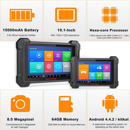 Con Maxisys Pro MS908 actualizado, es el último y más sofisticado escáner de diagnóstico de Autel que cuenta con el mejor hardware, incluyendo CPU Hexa, 2GB de RAM, 64GB de ROM, cámara de 8MP, 15000 mAh de batería enorme para un arranque rápido y multitarea, y el diseño ergonómico Para resistir daños de uso intensivo