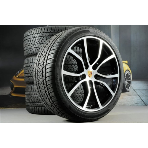 Compatible con Porsche Cayenne COUPÉ E3/9Y0 21" Exclusive Design Juego de ruedas de invierno con llantas de 9,5J x 21 ET46 + 11,0J x 21 ET49 + neumáticos de invierno Pirelli 275/40 R21 + 305/35 R21, con sensores RDK, color negro brillante + zona de giro brillante. en Solo apto para Cayenne Coupe.